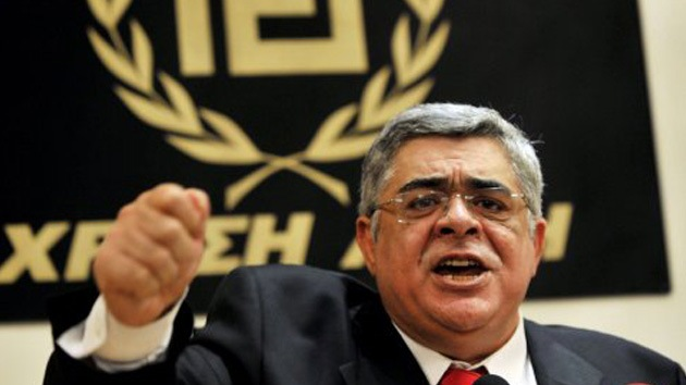 Nikos Michaloliakos, líder del partido griego de extrema derecha Amanecer Dorado (Chryssi Avgi), y varios miembros de la organización fueron detenidos este sábado acusados de formar una organización criminal.